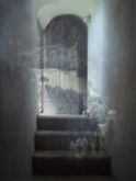 een open deur met drie treetjes er naartoe, waarachter absolute